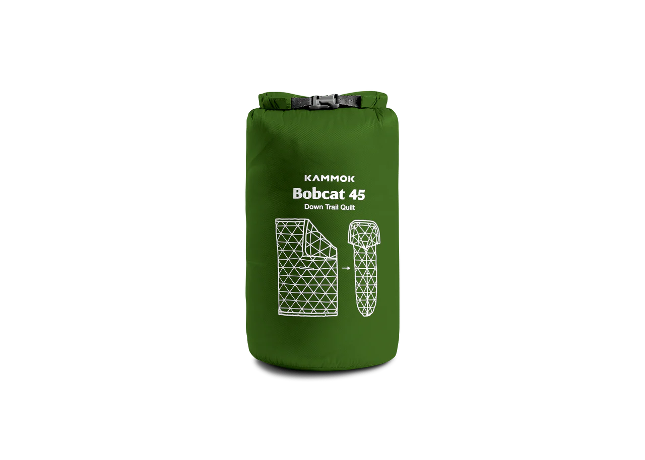Where your Bobcat 45°F sleeps when you're not using it affects its lifespan. Before storing after a camping trip, avoid gnarly smells and damaged fill by making sure your gear is completely dry. Then, store lightly stuffed in our upcycled storage bag (included) or hang in a dry location. This keeps your down gear fluffy when stored for extended periods of time.