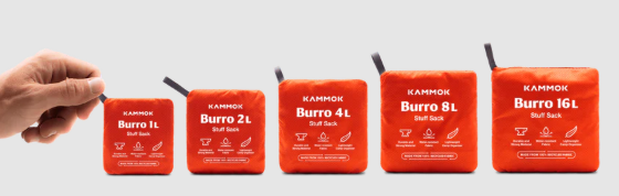 What are the weights of the different Burro Bags?Updated 11 days agoThe different Burro Bag sizes weigh:1L: 0.4 oz2L: 0.6 oz4L: 0.8 oz8L: 1.2 oz16L: 1.6 oz Was this article helpful? YesNo