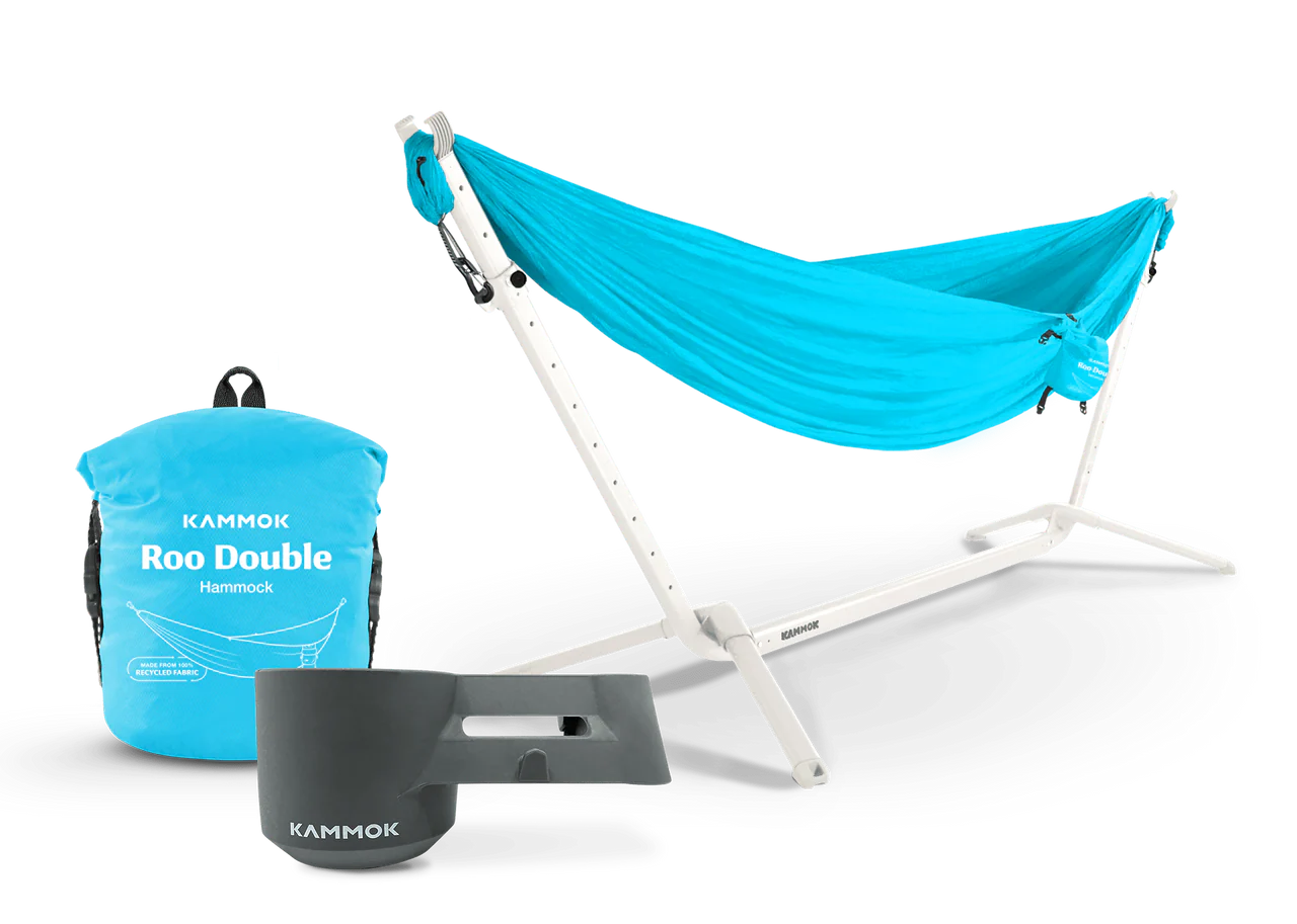 The Swiftlet Hammock Stand Bundle comes with the Swiftlet plus a Swiftlet Cup Holder and FREE Roo Double hammock.