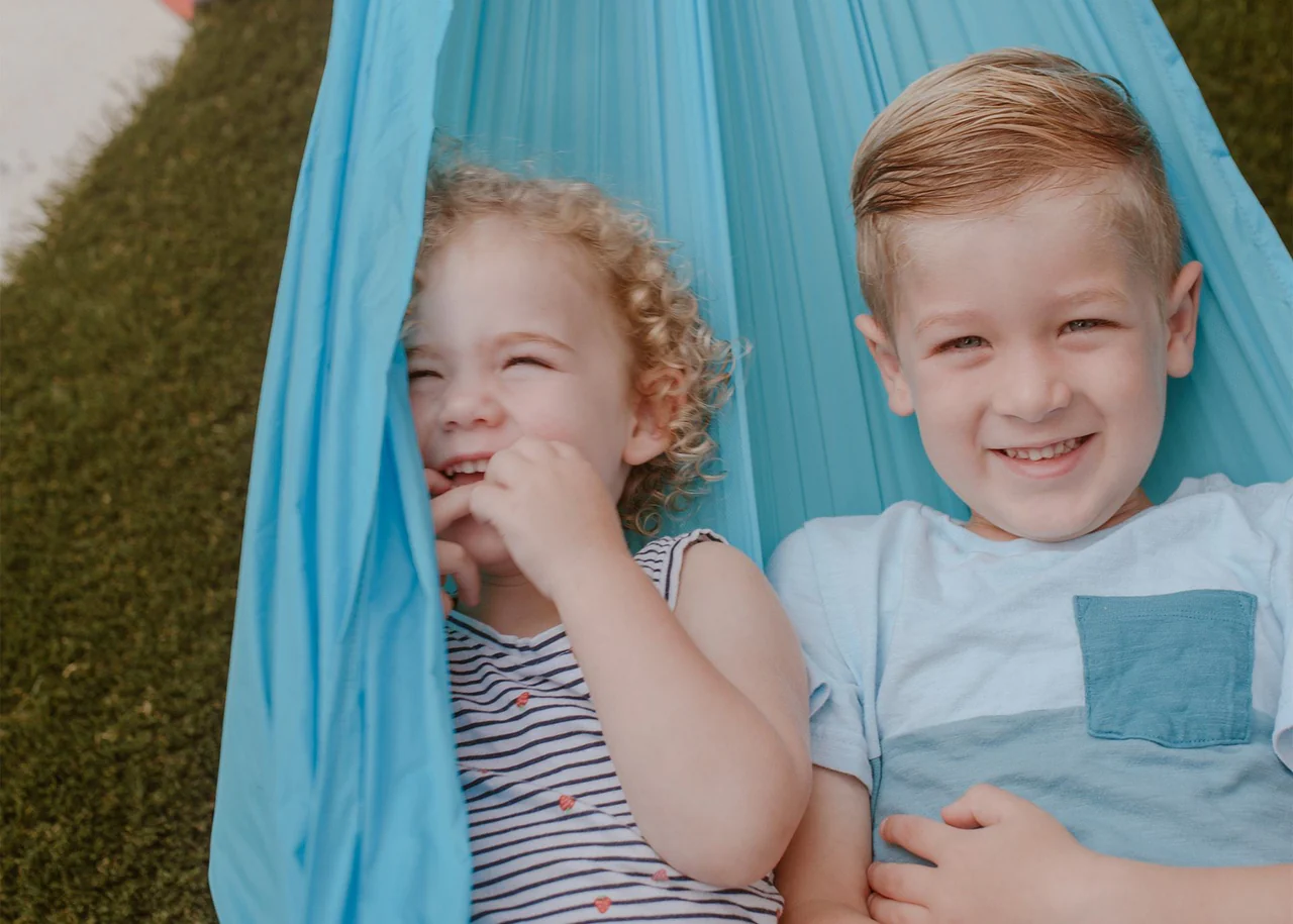 The Roo Jr. is designed for younger campers under 54" and ages 4-10. Campers should be supervised when hanging in the Roo Jr. hammock. With a max capacity of 400 lb, however, the Roo Jr. can hang two people comfortably. Siblings can hop in, too!